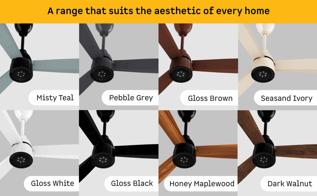 Included Components:Â Blade set (1 Unit), Remote (1 Unit), Motor box (1 Unit), Canopies (2 Units), Downrod (1 Unit), Shackle kit (1 Unit), User Manual & Warranty card (1 Unit)