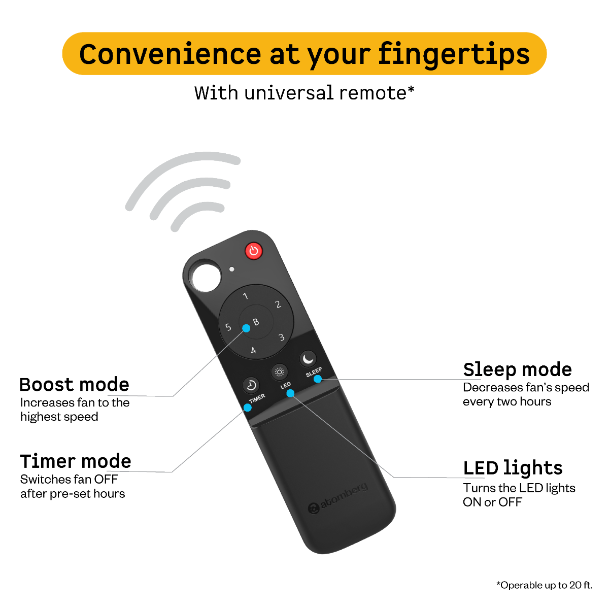 • Special Features: Energy Efficient BLDC Motor with Remote, Low Noise, Moonbeam Light